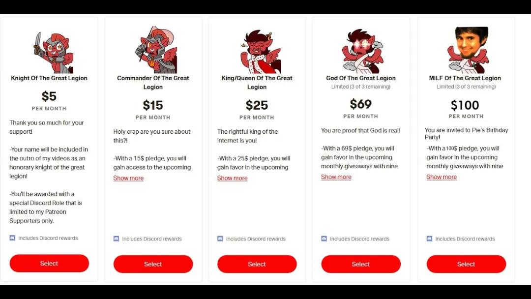 在2013年就成立的Patreon也是靠着众筹式打赏成为了许多内容创造者的第一个盈利平台,和YouTube上的网红比起来,Patreon上的创造者更加小众文艺一点,粉丝可以选择不同的档位来支持自己喜欢的红人,网红们有自由决定每个价格档位中都包括什么内容,Patreon从中抽成10%。