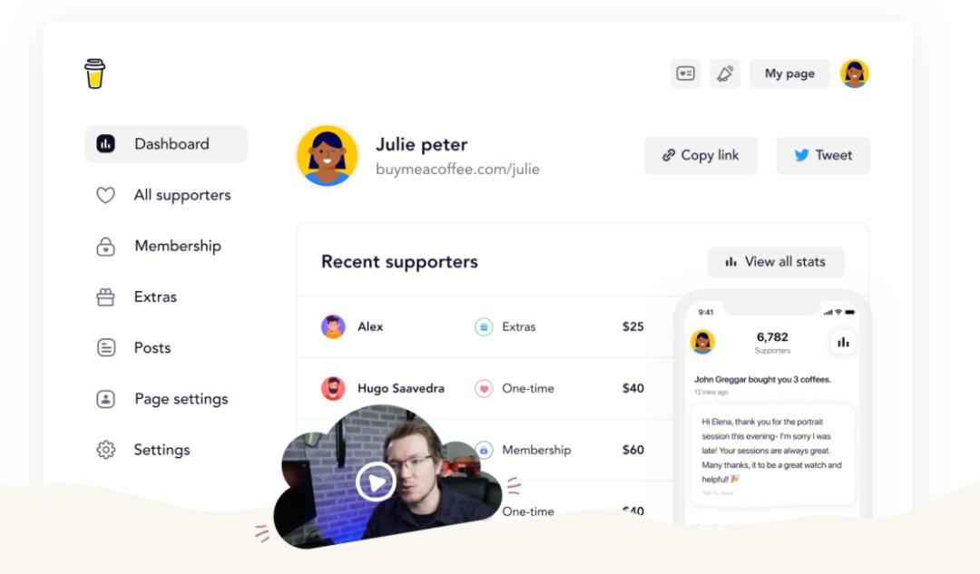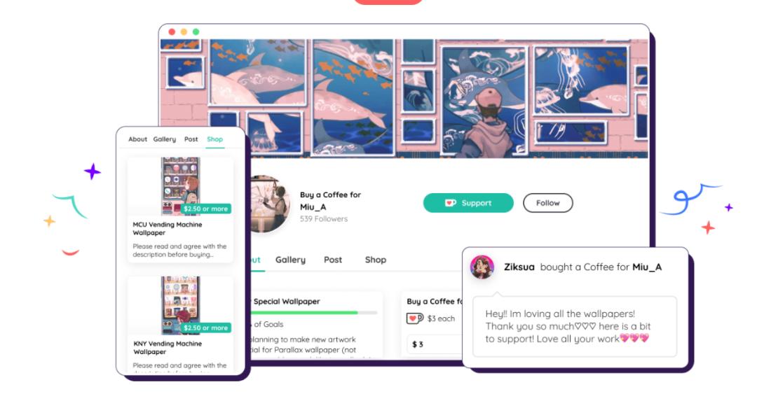 像Ko-fi和Buy me a coffee则是采用了Patreon的打赏概念,但是在这一基础上多了一些灵活度,比如用户无需账号就可以打赏,也可以不买会员按次打赏,平台也不收取提成,只有交易的手续费大约是Patreon的一半价格,因此吸引到了许多之前使用Patreon上的网红。
