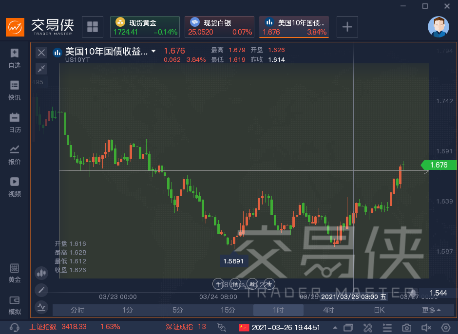 10年期美债收益率本周呈先跌后涨的趋势,周三之前,10年期美债收益率一路下跌至1.58%附近,随后开始震荡上行,目前已经回升至1.67%上方,但仍未收复本周的全部跌幅。