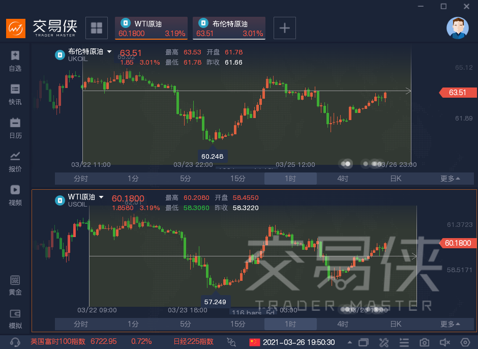 国际油价本周走势震荡,周三之前一路下行,美油一度跌至58美元下方,布油一度逼近60关口。周三因苏伊士运河堵塞短暂提振油价,美、布两油双双大涨逾6%,但周四两油再次大跌,回吐了周三的涨幅。周五,两油再次反弹,截至发文,两油日内双双涨逾3%,美油回升至60关口上方,布油回升至63美元上方。