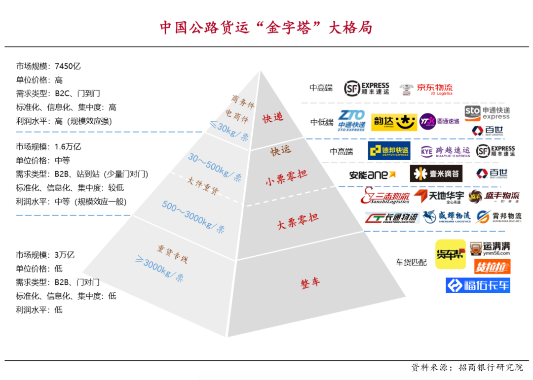 相对快递“红海”而言,“零担快运”这个对公众来说颇为陌生的词汇却是一个规模翻倍的蓝海市场。根据招商银行研究院报告,目前中国快递行业市场规模7450亿元,而零担市场规模达到了1.6万亿。