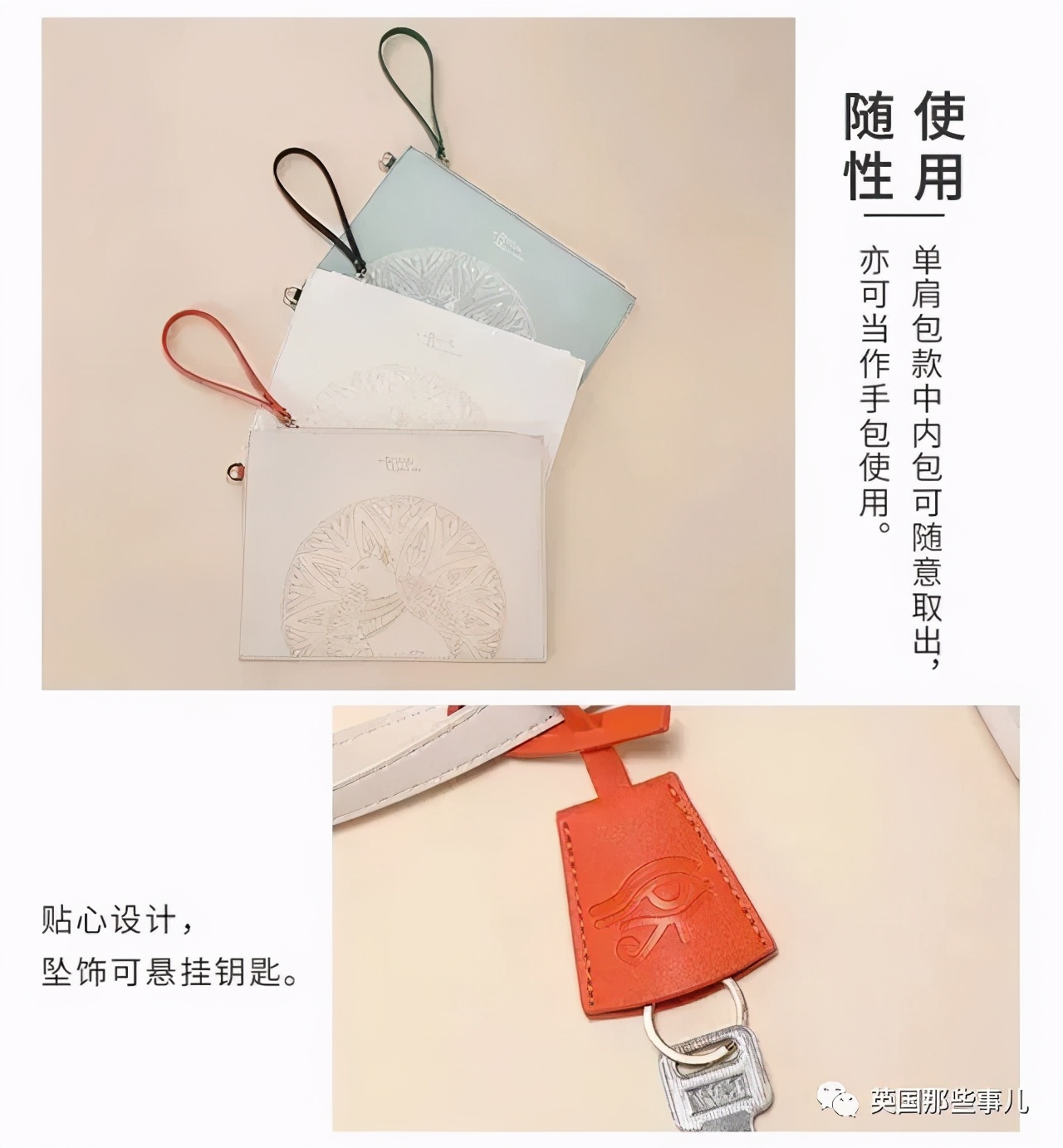三款新款TPU透明包包都有带可以当做手包的内袋。坠饰依旧用了安德森身上的首饰元素:荷鲁斯之眼配饰。