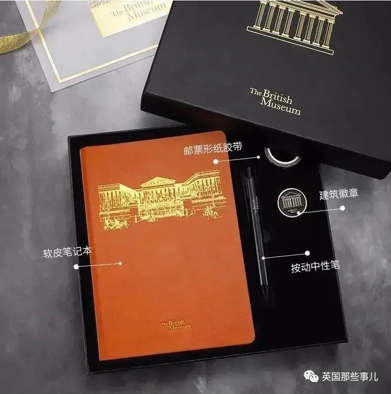 今天的第二个系列,就是大英博物馆出品的新年文具礼盒套装。笔记本封面就是大英博物馆早期封面图与帕特农神庙的门面图的早期结合图。