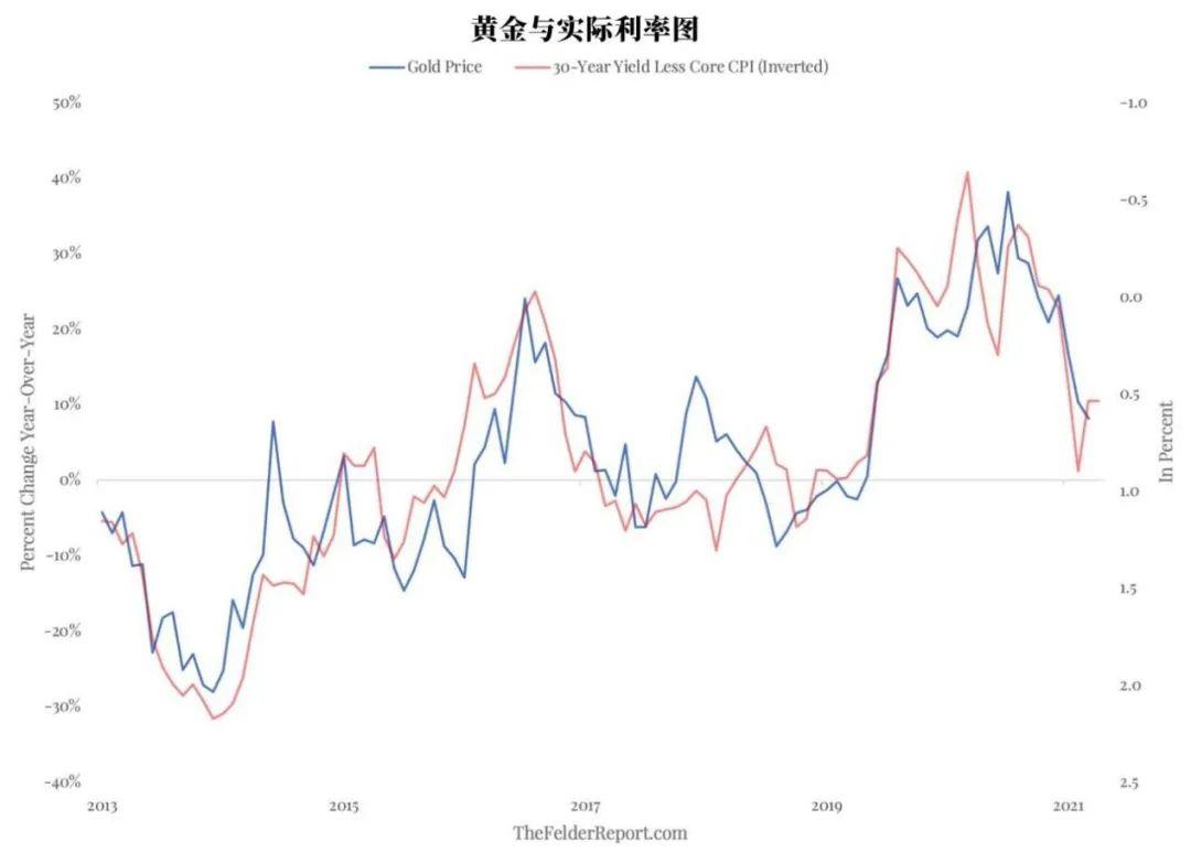 第一,黄金与实际利率(等于名义利率剔除通胀率)有着非常紧密的关系。