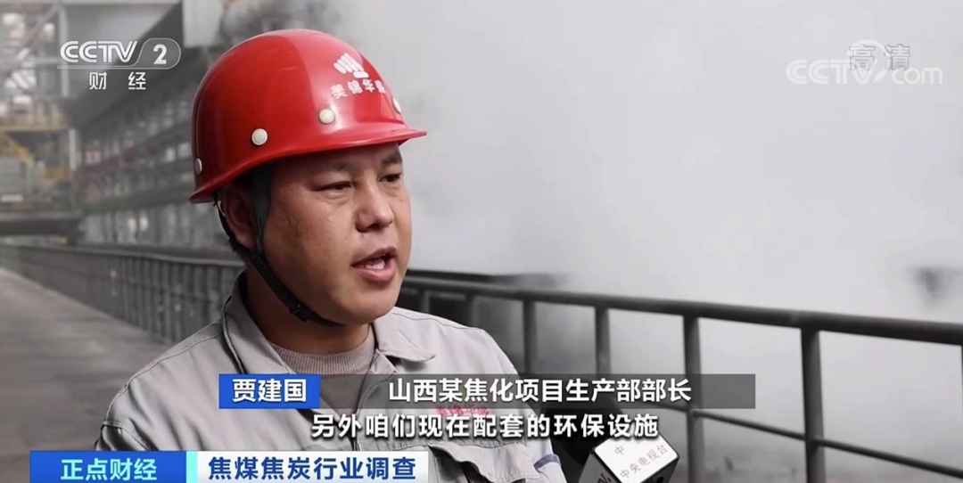 山西某焦化项目生产部部长 贾建国:现在10分钟出一孔焦,就40多吨,现场实际没有几个工人,这就是自动化程度的一个表现。另外现在配套的环保设施是比较齐全的,有地面除尘站,有脱硫脱硝,对颗粒物、二氧化硫和氮氧化物都进行了处理,都达到了国家规定的特别排放限值。