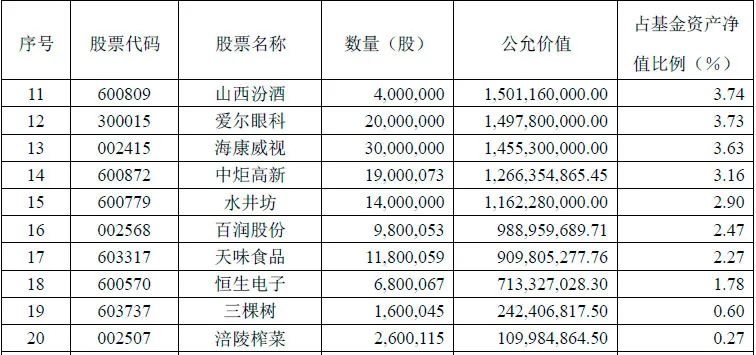 易方达中小盘去年年底规模超过400亿元,当前已经暂停申购。梳理基金2020年年报发现,位列其持仓11-20位的分别是爱尔眼科、海康威视、中炬高新、水井坊、百润股份、天味食品、恒生电子、三棵树、涪陵榨菜,其中,山西汾酒、爱尔眼科、海康威视、中炬高新持股市值占基金资产净值比例超过3%。