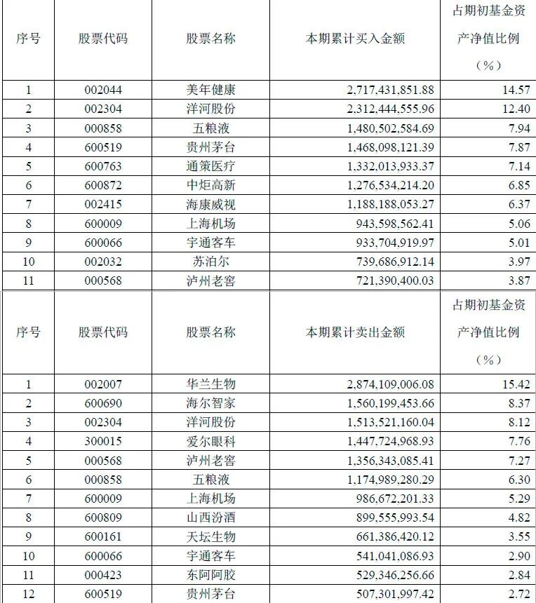 有意思的是,持仓中甚少出现白酒股的刘格菘,去年也在白酒股上操作了一把。去年,刘格菘累计买入贵州茅台、五粮液均为2.11亿元,累计卖出贵州茅台2.12亿元、五粮液2.07亿元。