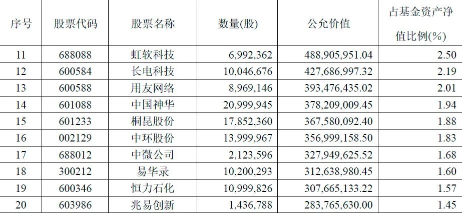 从广发双擎升级前十大重仓股来看,和三季度相比,刘格菘降低了对科技行业的配置,但是梳理基金第11-20名股票发现,科技板块依然是主阵地,并且去年四季度明显加大了对顺周期板块的配置。具体来看,基金持股第11-20位分别是虹软科技、长电科技、用友网络、中国神华、桐昆股份、中环股份、中微公司、易华录、恒力石化、兆易创新,其中,中国神华、桐昆股份、恒力石化是去年四季度新进股票。