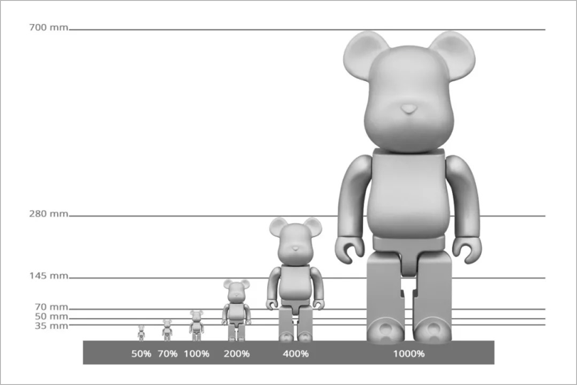 积木熊,也叫 Bearbrick、Be@rbrick、B熊,是日本 MEDICOM 公司生产的一种潮玩,由固定的熊型外观,和不同涂装、尺寸、材质构成。① 尺寸