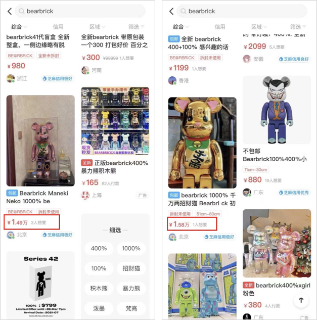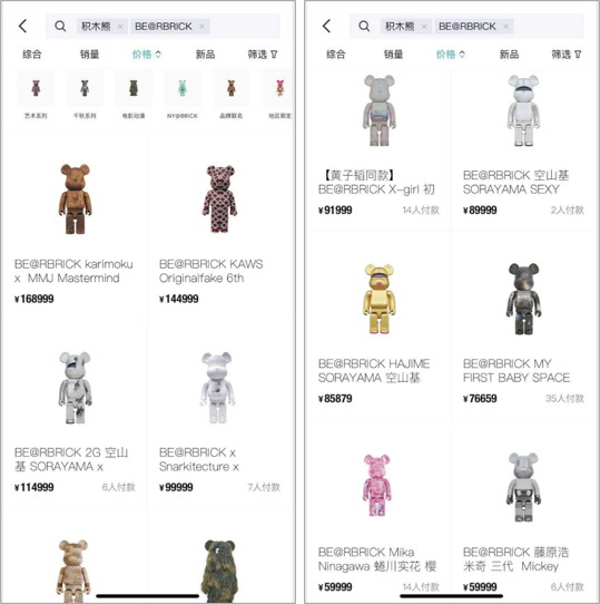 除了官方以外,这里也不乏用户自己发布的熊,随便一只 1000% 尺寸的限定款,就是 1.5w 上下: