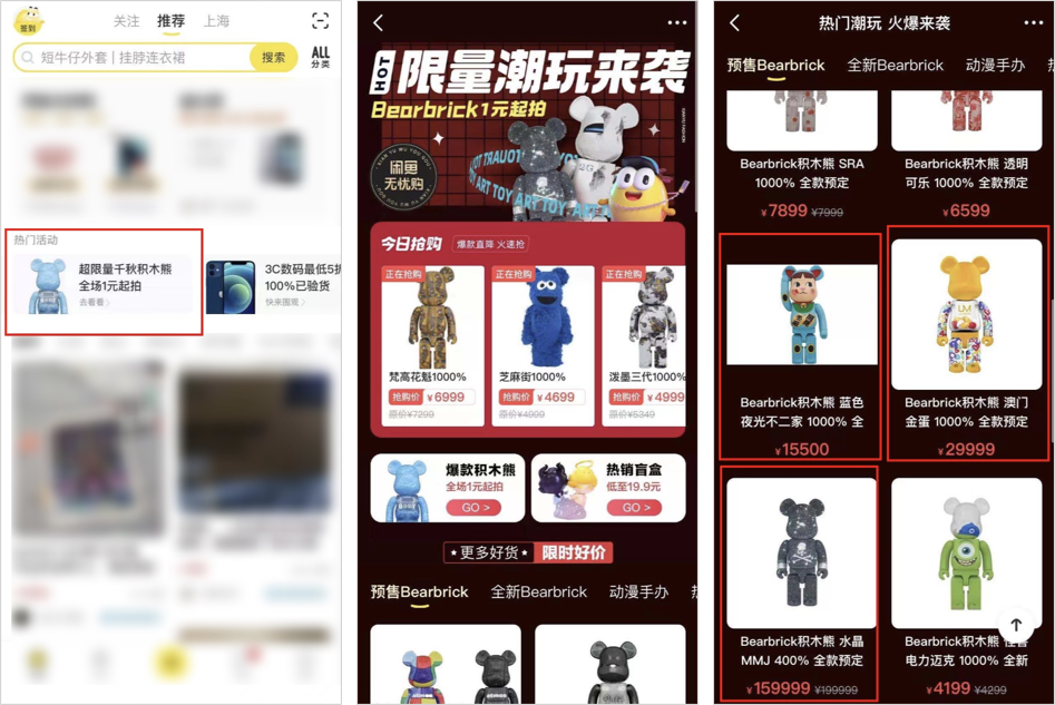 第三,「潮玩平台」渠道,这里的熊们溢价非常严重,有的甚至已经是三手、四手贩子在“找人接盘”了。