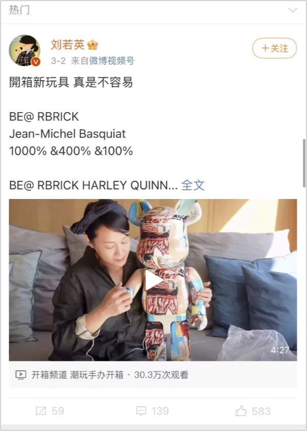 成为「潮玩」,甚至「艺术品」之后,越来越多的明星开始对它产生兴趣,并且跟风收藏。