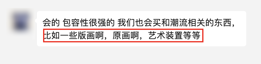 潮玩相关都会买,版画、原画、艺术装置都有涉猎。