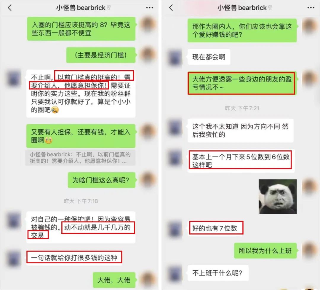 在比较早期的时候,熊圈,或者说潮玩圈的准入门槛相当高,也是真能赚到钱的,还是月入百万那种: