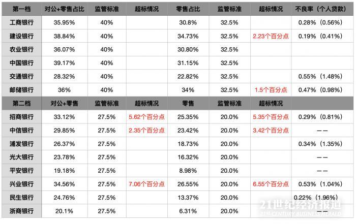 21世纪经济报道记者梳理已发布2020年年报的第一档、第二档银行数据发现,包括建设银行、邮储银行、招商银行、中信银行、兴业银行等5家银行的部分指标超标。其中,招商银行、中信银行、兴业银行两项占比上限均超标。