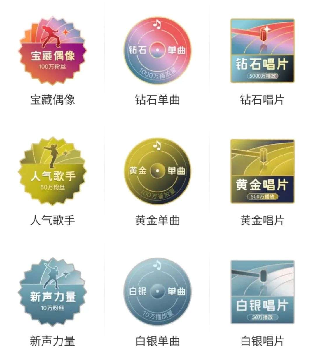 比如,网易云音乐的评论区一直是该平台一大特色,评论区达成“999+”就意味着歌曲已经有了一定的热度。因此,不少音乐人都把999+当作自己发歌后的目标。除了评论区有“999+”和“10w+”两项数据指标外,网易云音乐会对播放次数超过10万、100万和1000万的歌曲分别认证为白银单曲、黄金单曲、钻石单曲。
