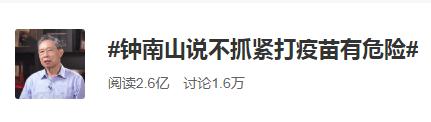 钟南山院士近日在接受采访时表示,中国控制得好就是为了争取时间接种疫苗。别等外国免疫,中国反而危险了。
