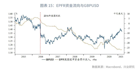第一季度英国经济复苏仍显乏力,消费对于经济增长构成显著拖累,唯一的安慰是投资贡献再度转正。但由于后脱欧时代的欧盟金融准入依然悬而未决,商业投资(总资产投资的分项)仍然低迷;从EPFR资金流向看,几乎没有显著的资金净流入。这也使得英镑升值显得后继乏力。
