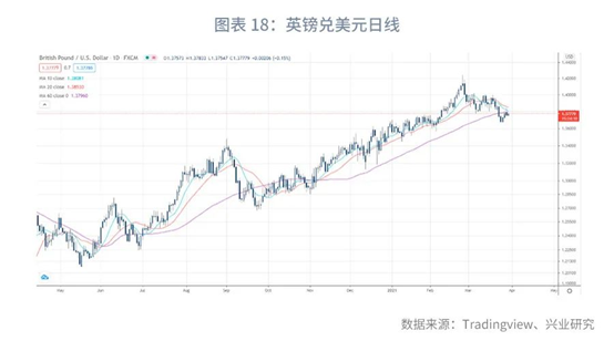 在更快的疫苗接种进度和逐步解封之下,英镑对欧元仍有优势。与欧元类似,基本面因子已经不支持英镑兑美元大幅升值,英镑兑美元面临修复高估的压力。