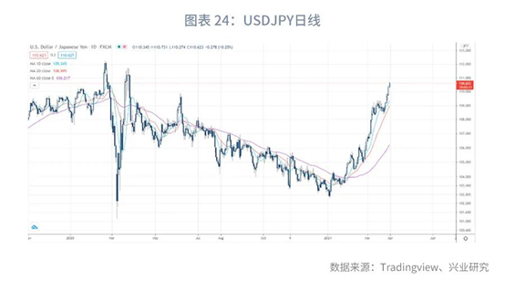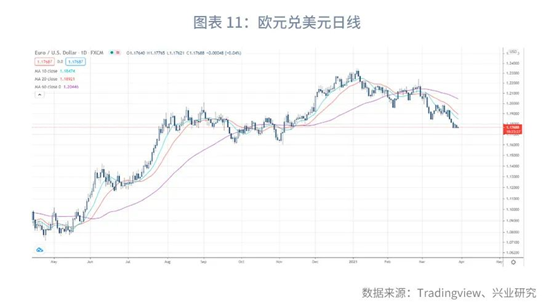 基本面美强欧弱格局下欧元继续承压。欧元区在经济重启、疫苗接种进度上均显著落后于美国,此外货币政策取向出现“美鹰欧鸽”的分化。欧元有继续修正高估的空间。