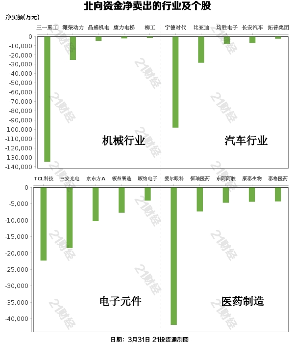 据21投资通(微信号ID:touzit21)智能监测,3月31日,北向资金净卖出79.03亿元,其中沪股通净卖出20.09亿元,深股通净卖出58.94亿元。