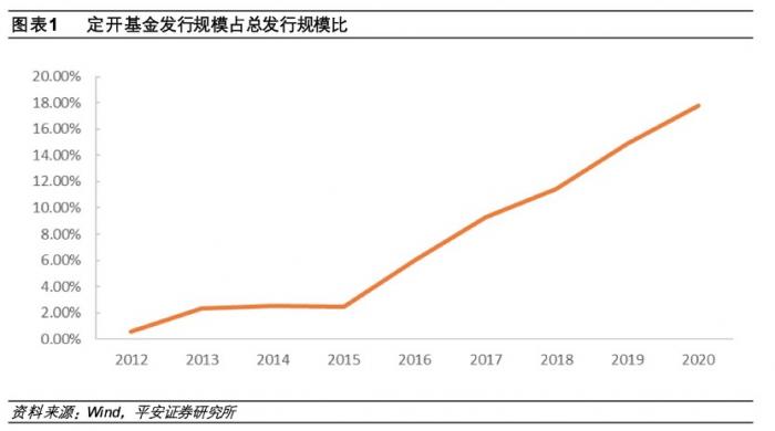 此外,有封闭式基金属性的定开基金占比规模也持续上升。