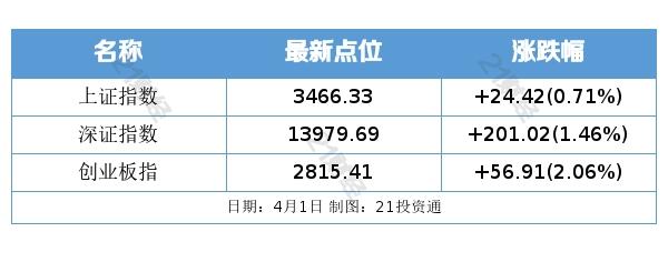 4月1日,A股三大指数集体收涨,创业板指大涨2.06%。两市合计成交6577亿元,行业板块涨跌互现,钢铁板块强势领涨。