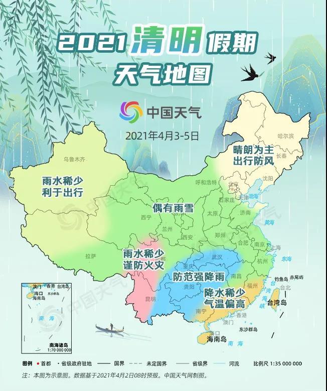 中国天气网提醒,清明假期,外出祭扫、踏青活动增多,西南和江南地区的朋友注意携带雨具、规划出行,同时,祭扫时注意用火安全。