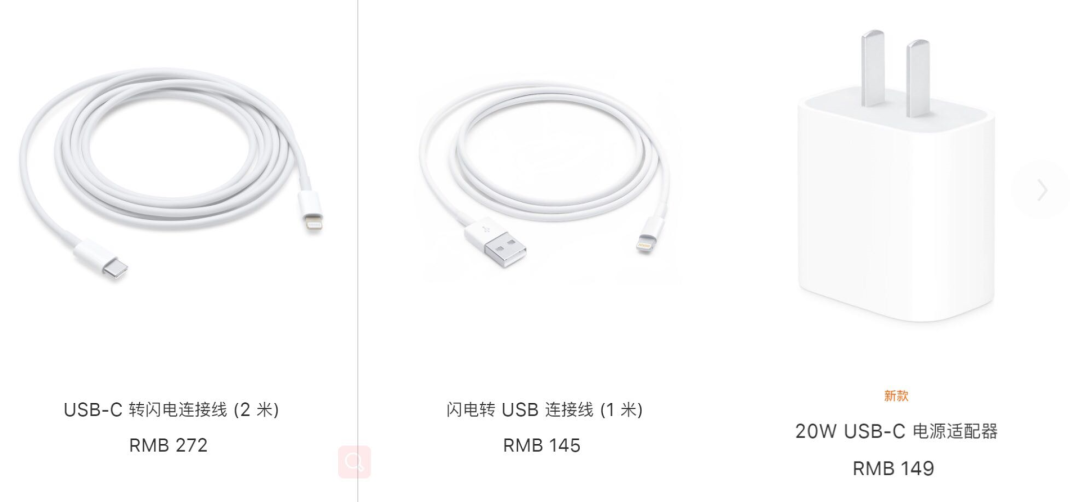 苹果官网中数据线和充电器的价格 来源 / 苹果官网