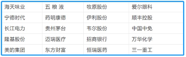 茅20这个概念,其实是选出了20个细分行业中的贵州茅台,做了一个究极龙头组合。除了酒中茅台之外,酱茅海天味业、旅茅中国中免、泥茅海螺水泥、银茅招商银行等白马股都在组合里面,这些成分股也几乎都是公募基金经理的心头肉。