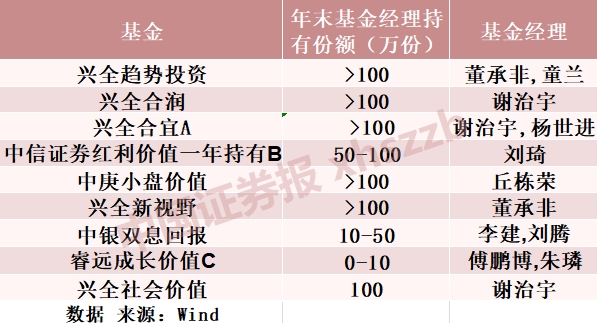 此外,董承非和童兰自购兴全趋势投资、丘栋荣自购中庚小盘价值、董承非自购兴全新视野等均超过100万份。