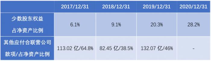 在业界看来,联营合营公司规模较大、少数股东权益占比较大,并且这些联营合营公司、非全资子公司的其他股东若涉及金融机构,这种情形通常被认为可能潜藏表外负债。