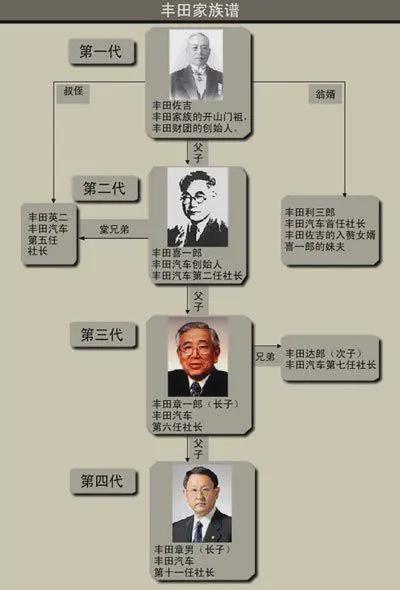 丰田章男,丰田家族的第四代长孙,是含着金汤匙出生的豪门公子。他的爷爷是丰田汽车创始人丰田喜一郎,堂爷爷是日本汽车界与本田宗一郎齐名的殿堂级人物丰田英二,父亲是丰田汽车第六任社长丰田章一郎,奶奶为日本高级百货公司高岛屋总裁饭田新七的女儿二十子,母亲是原三井银行董事三井高长的女儿博子……虽然出生在这样的豪门之中,但在丰田章男的身上,却并没有富家子弟的纨绔之风。丰田章一郎一再告诫他,他不会因家族沾光。