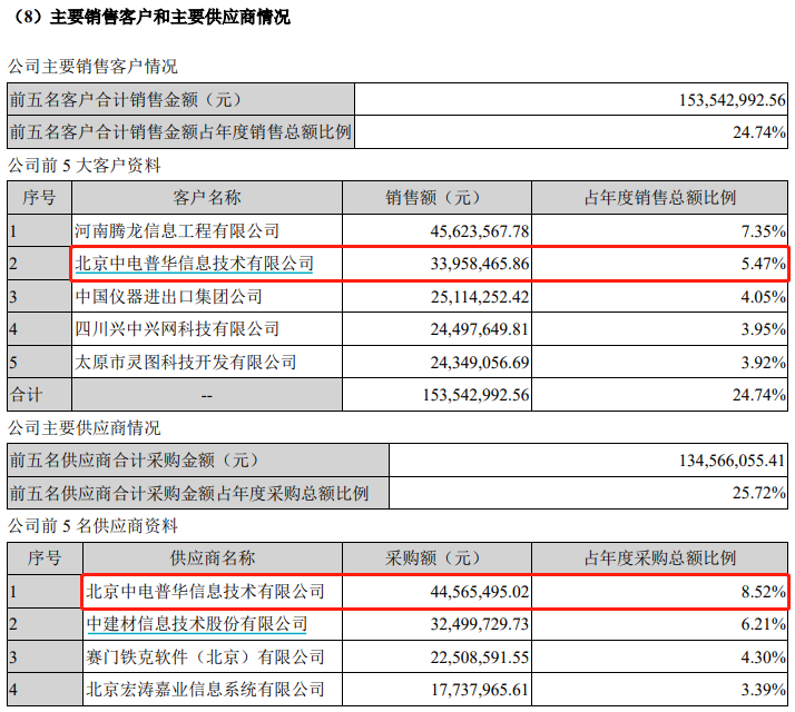 创意信息2015年年报显示,中电普华既是公司大客户,又是公司主要供应商。2015年,创意信息对中电普华的采购额为4457万元,对中电普华的销售额为3396万元,当期采购额大于销售额。