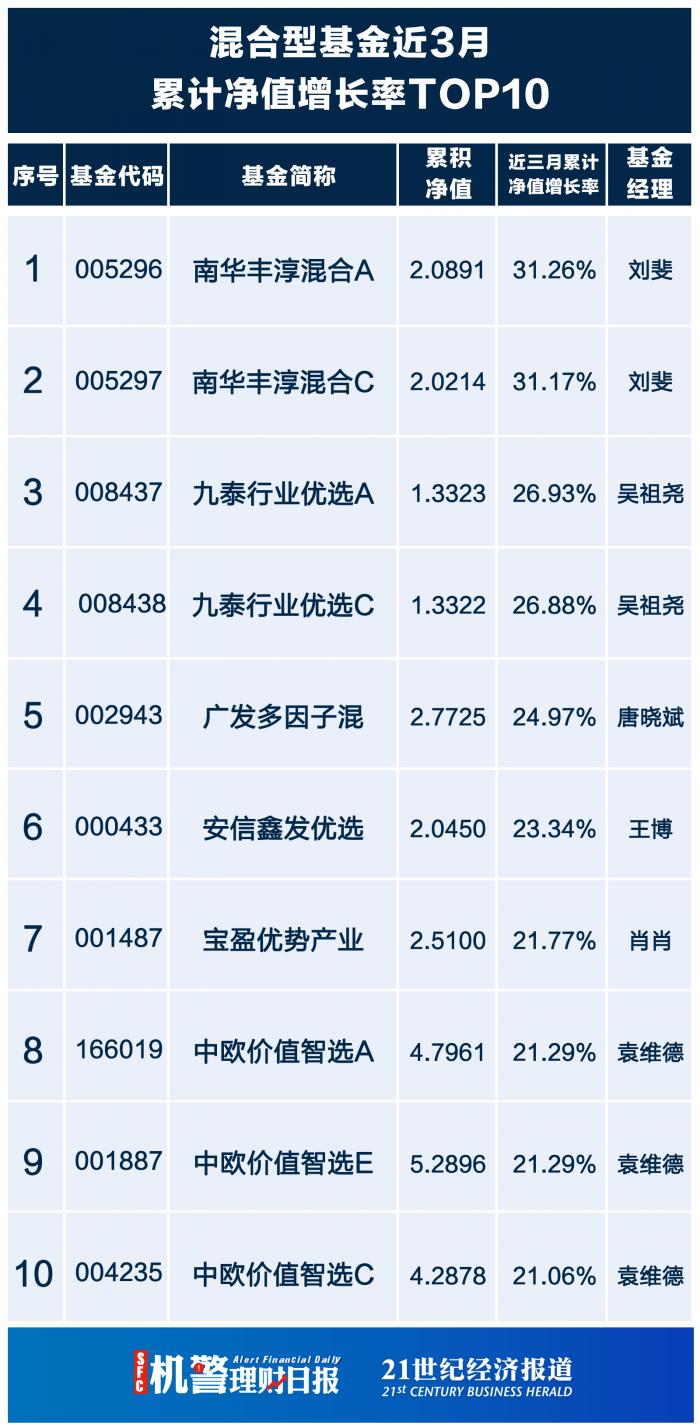 2、 南财理财通【基金风云榜】基金近3月累计净值增长率TOP10