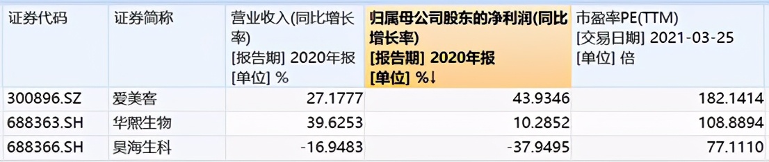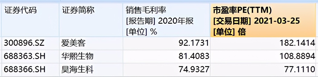 爱美客的盈利能力比较强,让它享受到了较高的估值。