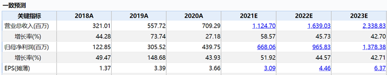在Wind一致预测指标上,对于爱美客未来三年的净利润增速分别是51.92%、44.57%和42.71%。