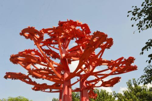 在广州雕塑公园有一组大型抗非典纪念雕塑群,它就是潘鹤2004年参与创作的《广东抗非典纪念碑》,作品由红棉树、半环形浮雕墙、医护人员雕像三部分组成。其主体红棉树是核心的部分。木棉是“英雄花”,也是广州市的市花,是广州近现代以来革命精神的象征。在非典的主题下,红棉转化成南粤人民抗非典中所体现出的英雄气概的化身。而环绕红棉树的是半环形浮雕墙、医护人员雕像,它通过现实主义的叙事手法,记录着非典期间值得铭记的历史瞬间和重要人物形象,与红棉树之间形成一虚一实的互补关系。