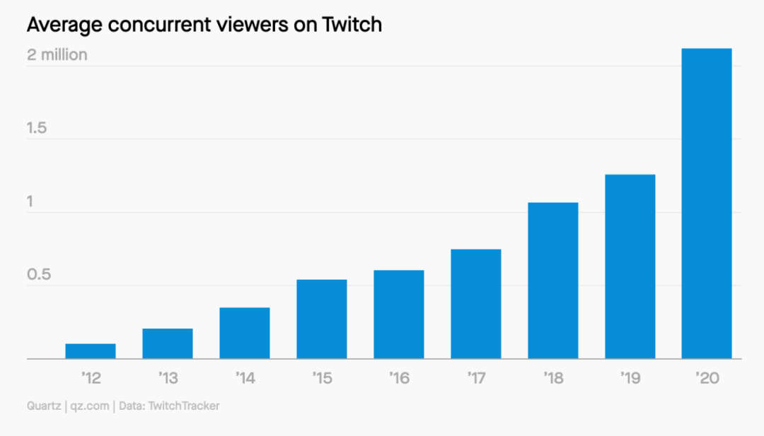 图为Twitch平均同时在线观众数量 数据来源:Twitch Tracker