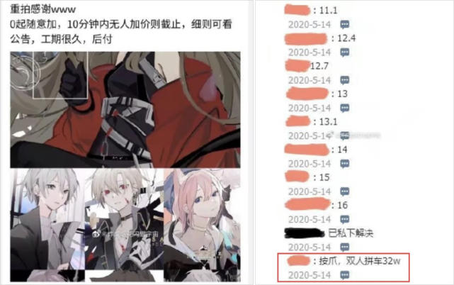 另一种人设是画手直接把人设图画好,然后放出来拍卖,由价高者拍得。