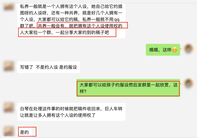 “共养”是指好多人拼单让画手画人设,他们在一个群里,同时拥有这个设子;