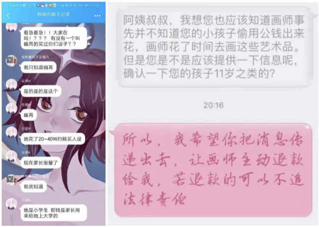 同时,像开头提到的「白琴」事件一样,孩子花天价买图,父母追讨的案例也不少: