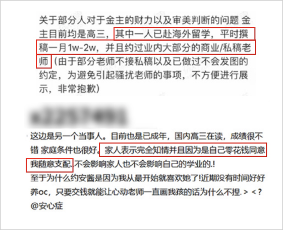 一方面,可能是因为设圈里确实富婆多。比如,上面提到的那两位花 35w 约稿的玩家,就是两个家境富裕的留学生,这些钱对他们来说只是“零花钱”。