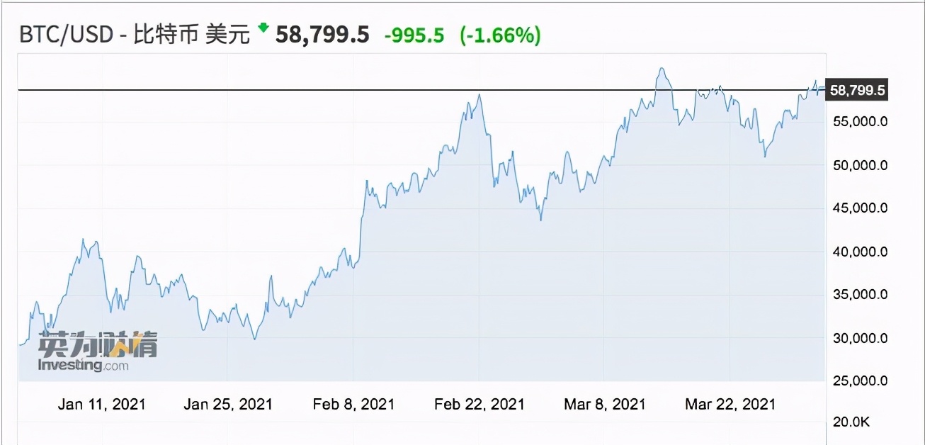 据加密货币数据公司Messari的数据显示,2021年一季度比特币价格上涨了约103%。机构对比特币的需求是比特币价格上升的关键因素。很多机构认为持有比特币可以对冲通胀,自各国出台刺激经济计划以来,加剧了全球通胀。近一年来,美国的通胀率达1.7%,欧元区3月通胀率从一个月前的0.9%升至1.3%,刺激了机构对比特币的需求。