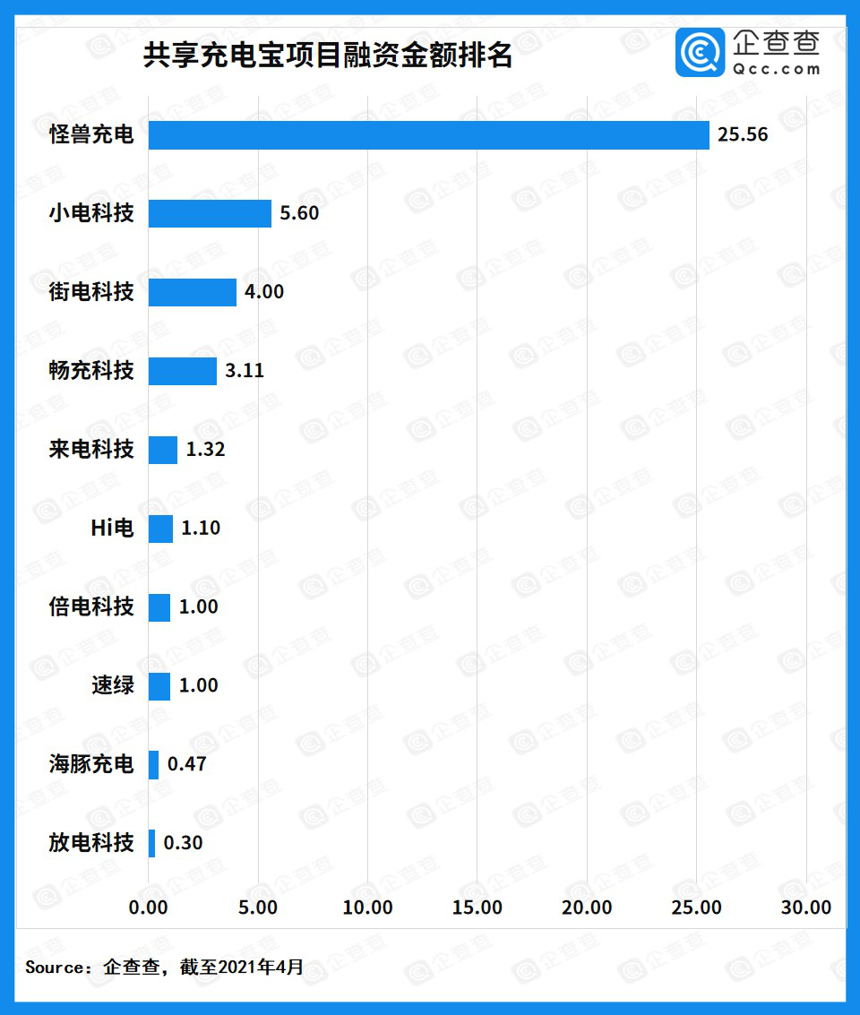 如今,共享充电宝行业已完成从“百电大战”到“三电一兽”的格局演变。企查查数据显示,怪兽自2017年成立以来一路披荆斩棘,先后获得6轮融资,总金额高达25.56亿元人民币,远超其他竞品,而同属“三电一兽”的小电、街电和来电分别获得融资5.6亿、4亿和1.32亿元,均排名前五。此外,畅充科技、Hi电、倍电科技等项目同样位居前列。