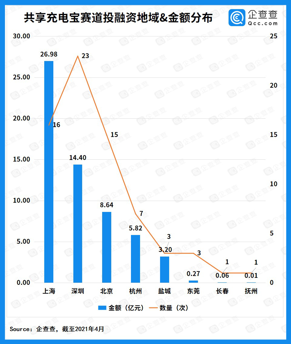 企查查数据显示,高瓴资本成共享充电宝赛道“最佳投手”,共参与投资6次,涉及项目总金额超过25.56亿元人民币,软银亚洲则以20.48亿元位居次席。此外,CMC资本、凯雷投资、顺为资本、云九资本等同样跻身前十。