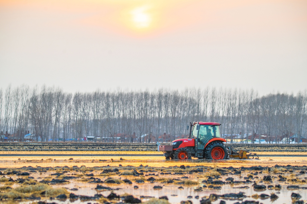 春日的黑龙江,一望无际的黑土地上冰雪未融,但北大荒人早已开始了辛勤的劳作。