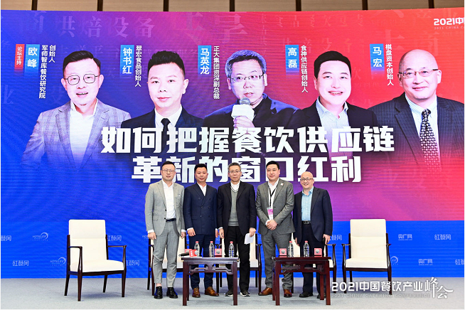 3月30日,在“2021中国餐饮产业峰会暨首届中国餐饮产业红牛奖盛典”上,军师智库餐饮研究院创始人欧峰作为主持嘉宾,与正大集团资深副总裁马英龙、翠宏食品创始人钟书红、食神供应链创始人高磊及棋盘资本创始人马宏,就《如何把握餐饮供应链革新的窗口红利》进行了深度交流与对话。