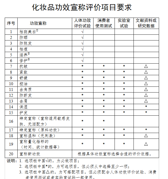 ▍截自化妆品功效宣称评价规范