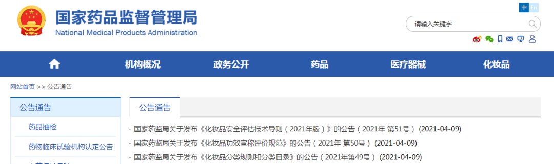 今日,国家药监局连发三条新规,分别是《化妆品分类规则和分类目录》《化妆品功效宣称评价规范》《化妆品安全评估技术导则(2021年版)》,由表及里,既明确了化妆品分类,也指明了不同功效宣称的评价试验要求和安全评估的方法论。据了解,这三条法规都将自今年5月1日开始实施。